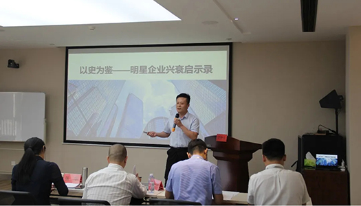 ▲鄭州地產(chǎn)集團(tuán)投資管理有限公司 總經(jīng)理 于通 試講《以史為鑒 明星企業(yè)興衰啟示錄》