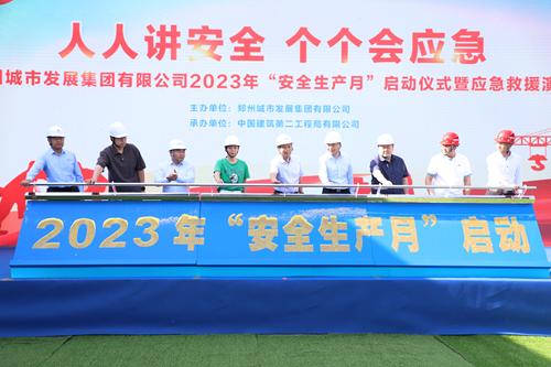 為認(rèn)真貫徹《鄭州市國(guó)資國(guó)企2023年“安全生產(chǎn)月”活動(dòng)實(shí)施方案》要求,落實(shí)國(guó)家、省市安全生產(chǎn)工作部署,提升在建項(xiàng)目人員安全意識(shí)和避險(xiǎn)逃生能力。6月6日,鄭州城發(fā)集團(tuán)在龍湖金融中心外環(huán)7號(hào)樓項(xiàng)目舉行2023年安全生產(chǎn)月啟動(dòng)儀式暨應(yīng)急救援演練活動(dòng)。