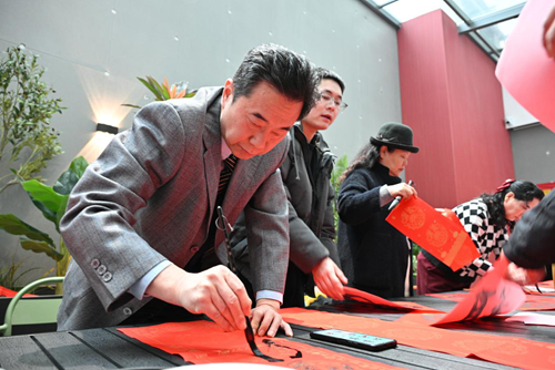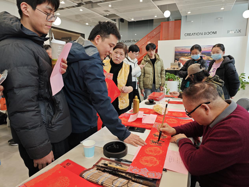 活動(dòng)當(dāng)天,鄭州市文聯(lián)的書(shū)法家們受邀來(lái)到現(xiàn)場(chǎng)。他們個(gè)個(gè)精神飽滿,手執(zhí)毛筆,在一張張紅紙上揮灑自如,書(shū)寫(xiě)著寓意深遠(yuǎn)的新年序言。這些序言既是對(duì)過(guò)去一年的總結(jié),也是對(duì)新年的美好期許。書(shū)法家們的精彩表演贏得了現(xiàn)場(chǎng)觀眾的連連稱(chēng)贊,租戶們紛紛表示:“書(shū)法家們寫(xiě)的字真是太好了!‘福’字看著就喜慶,春聯(lián)的寓意也都非常美好。”