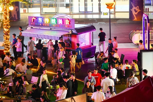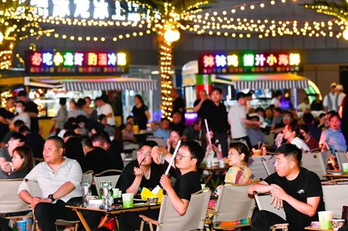 熠熠星光耀向夜空,呼應(yīng)著霓虹閃爍的奧體中心,飄散的煙火氣和美食的香氣充斥著整個(gè)下沉空間,舞臺(tái)音樂節(jié)奏歡快、火爆酷炫,在霓虹交錯(cuò)的空間里,一天的時(shí)間仿佛被夜市拉長(zhǎng),這是年輕人帶給這座城市的無限活力。