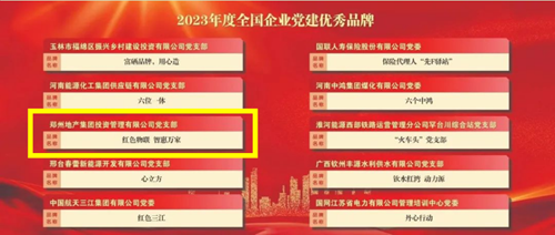 喜報(bào)!鄭州地產(chǎn)集團(tuán)投資管理有限公司黨支部“紅色物聯(lián) 智惠萬家”被授予“2023年度全國企業(yè)黨建優(yōu)秀品牌”榮譽(yù)稱號