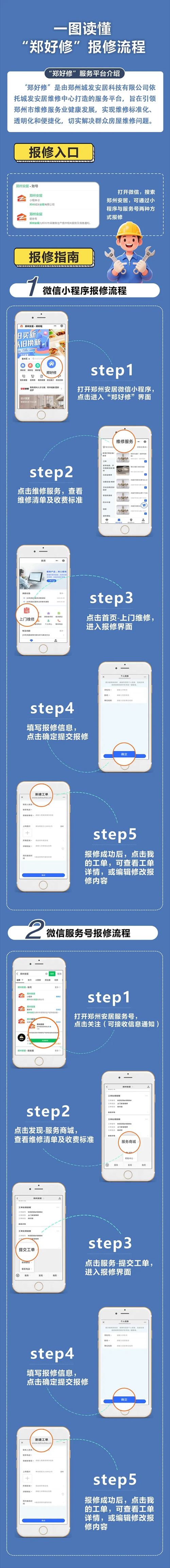 為切實(shí)解決群眾房屋維修難題,推動(dòng)鄭州市維修服務(wù)業(yè)邁向標(biāo)準(zhǔn)化、透明化、便捷化發(fā)展新征程,由鄭州城發(fā)集團(tuán)下屬子公司鄭州城發(fā)安居科技有限公司精心打造的“鄭好修”服務(wù)平臺(tái),正式上線運(yùn)營。市民通過鄭州安居微信小程序、鄭州安居微信服務(wù)號(hào),即可輕松實(shí)現(xiàn)一鍵報(bào)修,享受優(yōu)質(zhì)高效的房屋維修服務(wù)。
