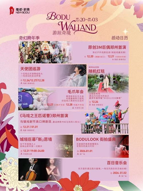 烏鎮(zhèn)戲劇節(jié)熱門劇目《馬戲之王匹諾曹》鄭州首演,帶你闖入夢(mèng)幻童話世界;市民心愿將通過(guò)城垣巨幕“新”愿墻映上古老城墻,讓歷史見(jiàn)證美好憧憬;街拍盛典解鎖“巨星待遇”;格萊美級(jí)慢鏡頭定格高光瞬間;百日音樂(lè)會(huì)中西交融的旋律流淌街巷;竹藝美陳織就古今漫游動(dòng)線,邀全城市民共赴跨越時(shí)空的迎新之旅。