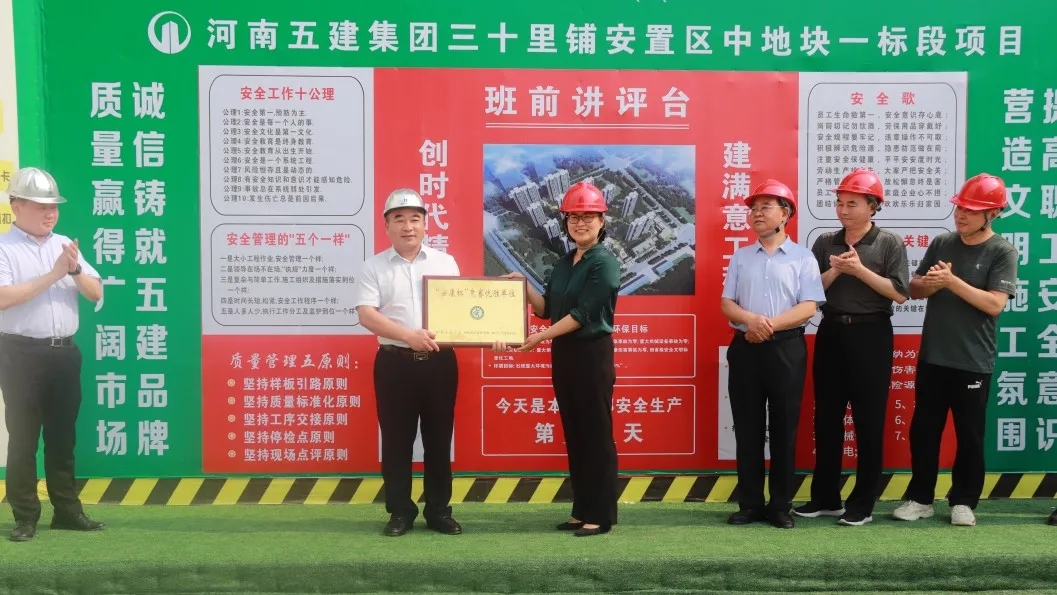 6月2日下午,鄭州市總工會機(jī)關(guān)工會主任王銀倉、市總工會勞動和經(jīng)濟(jì)部部長宋慧分別向集團(tuán)兩家獲獎公司頒發(fā)鄭州市“安康杯”競賽優(yōu)勝單位獎牌。
