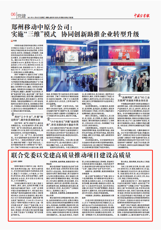11月2日,由中國企業(yè)聯合會、中國企業(yè)家協會主管的中央級報紙《中國企業(yè)報》對西流湖公司黨建工作先進經驗進行了宣傳報道。